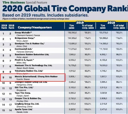 近期,在美國雜志《tirebusiness》公布的全球輪胎企業(yè)75強(qiáng)排行榜中,瑪吉斯輪胎排名第9,作為前十品牌中唯一的華人輪胎企