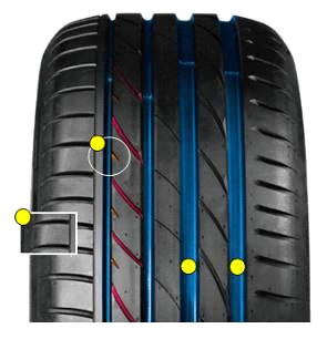 VS5采用全新的高剛性花紋設(shè)計(jì),非對稱的優(yōu)化設(shè)計(jì),科學(xué)設(shè)計(jì)的小切角可以快速破開水膜,具有增強(qiáng)排水性的作用,三寬一窄的主溝