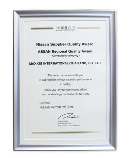 日本日產(chǎn)汽車(Nissan Motor)于9月底公布2021年亞太區(qū)供貨商質(zhì)量優(yōu)秀獎(2021 Nissan ASEAN Regional Supplier Quality Award),該獎項由日產(chǎn)汽車總社社長 Mr. Makoto Uchida 親自頒發(fā),瑪吉斯輪胎再度獲得日產(chǎn)汽車肯定,今年為第二次獲頒此殊榮。