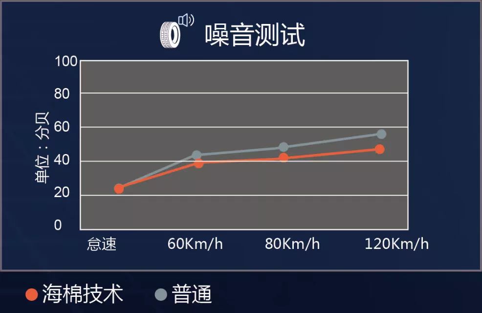 與同一產(chǎn)品普通輪胎相比,運(yùn)用吸音海綿技術(shù)的輪胎,依照寸別不同,分別可降低噪音5-10dB,輪胎尺寸越大,降噪感覺越明顯。